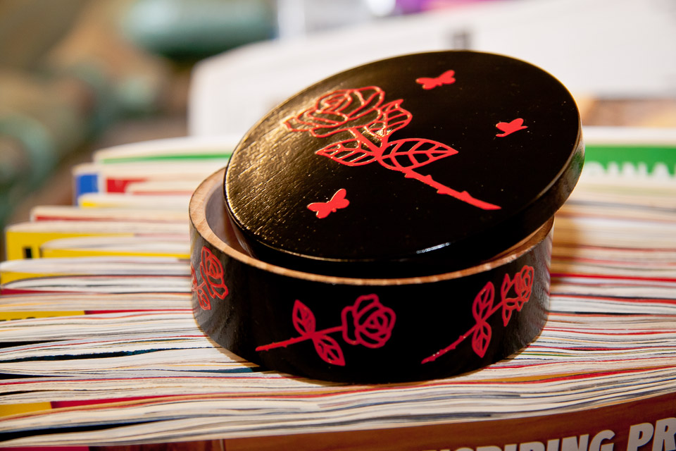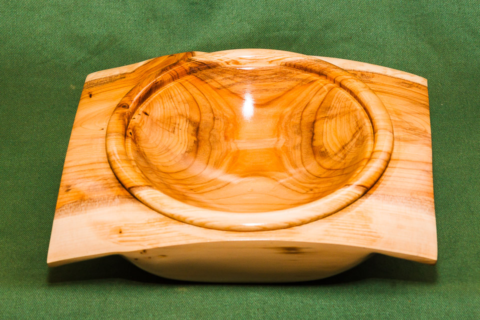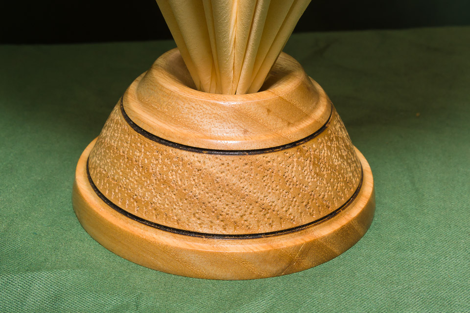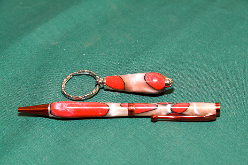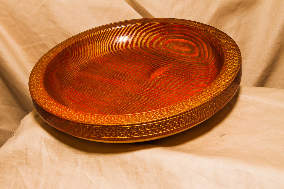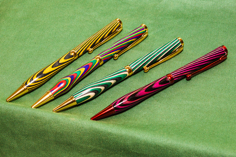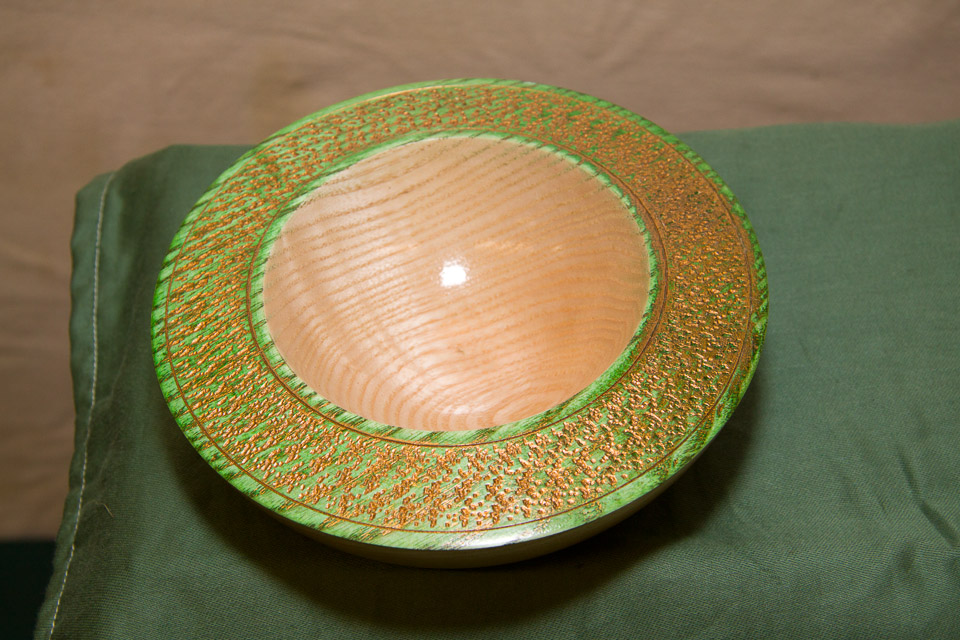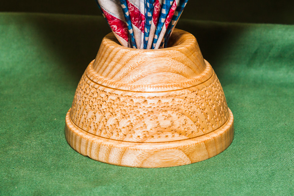 In this gallery pieces shown include - boxes with oriental designs and colouring, fob watch, flower arrangements, goblets with and without captive rings, laminated pieces, pens, apples and pears, vase with boot lacing, skeleton clocks, figures, natural edged pieces, boxes with inlay, many bowls with texturing and colouring, magnifying class, napkin stands, mushrooms and earring/jewellery stands.