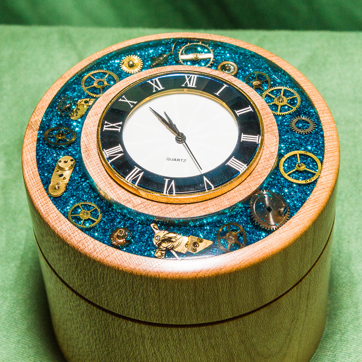 Continuing from his first gallery - this gallery includes - hollow forms, pendants, spiralling on plates and dishes, involuted turning, many pens, bowls and dishes with colouring and texturing, clocks, figures, owls, Nativity scene, apple and pear, and ladybirds.