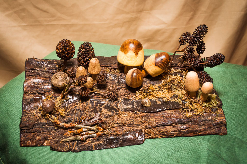 She has created many attractive and creative pieces and displays - normally with a wood finish but with colouring on occasion.