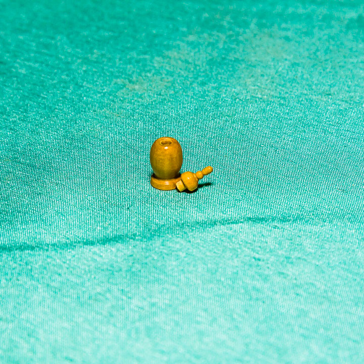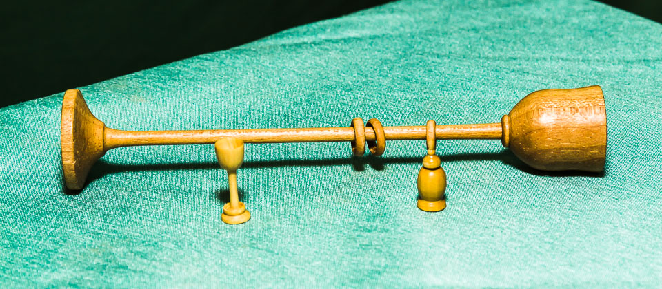 Of note are the number of miniature pieces she has created - many about one inch tall - and still with a captive ring ...