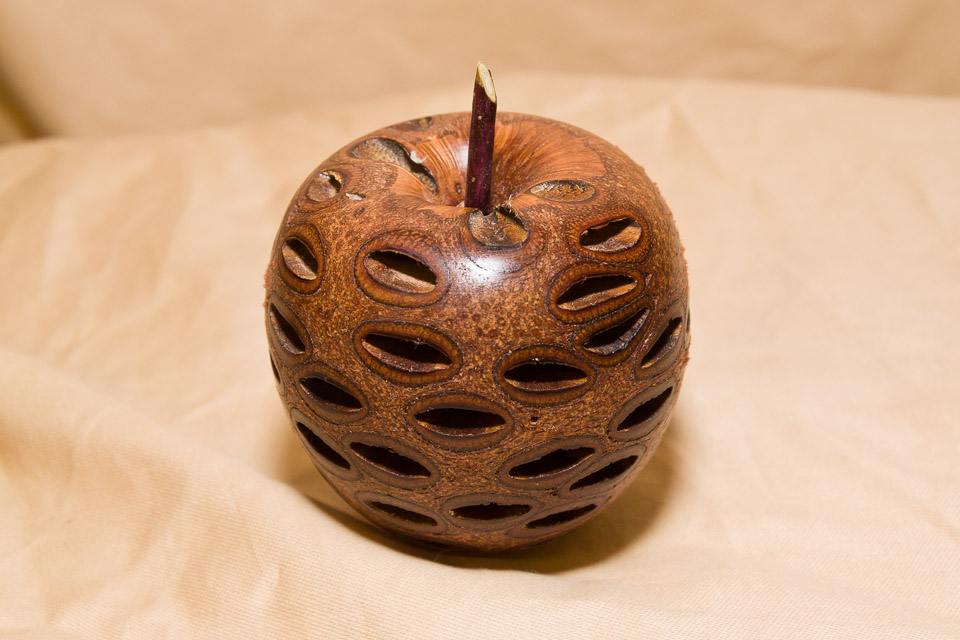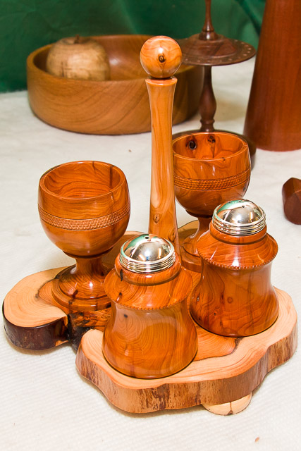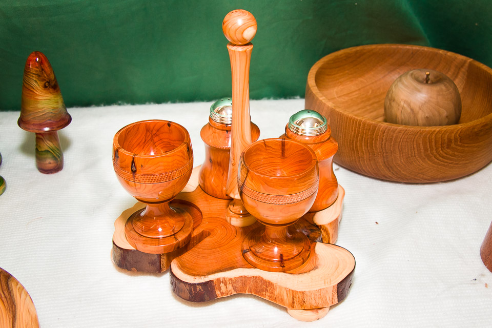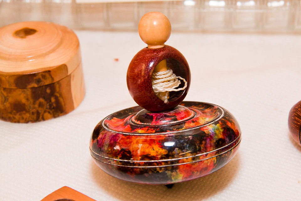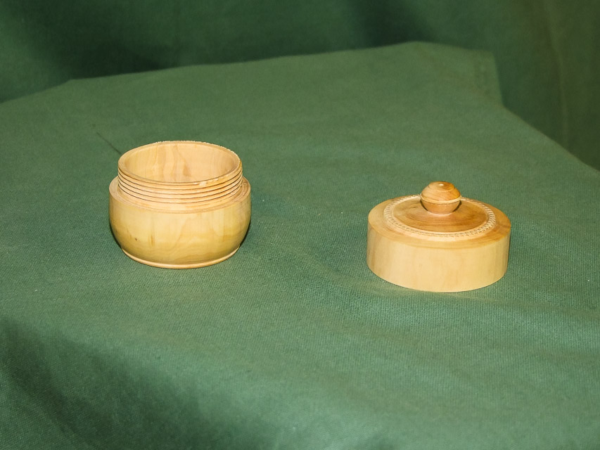 Items exhibited or demonstrated included Table Sets, Spinning Tops, various Fruit, Hats, Clocks, Bowls, Pens, Lidded Bodes, Eggs, Lace Bobbins, a Doll, Bud Vase, Mushroom, Jewellery Stand and a Pomander.